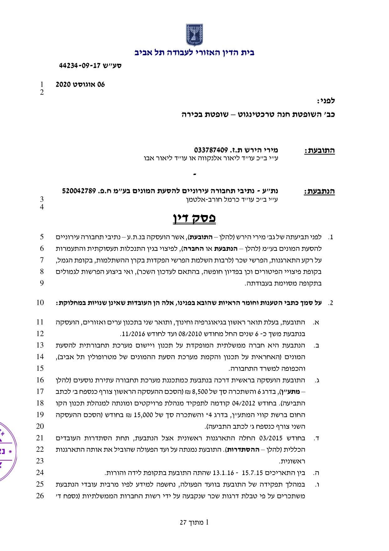 סע"ש 44234-09-17 מירי הירש נ' נת"ע בע"מ